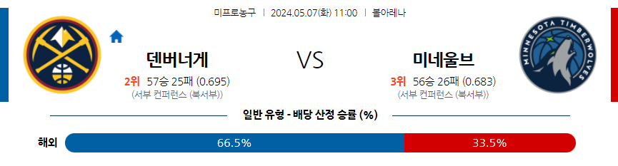 [킹콩티비] 05월 07일 덴버 vs 미네소타 NBA 생중계, 스포츠분석,스포츠중계