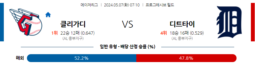 클리블랜드 디트로이트 야구분석