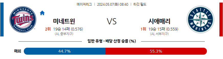[킹콩티비] 05월 07일 미네소타 vs 시애틀 MLB 생중계, 스포츠분석,스포츠중계