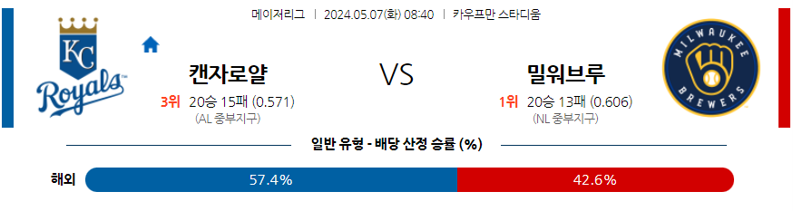 [킹콩티비] 05월 07일 캔자스시티 vs 밀워키 MLB 생중계, 스포츠분석,스포츠중계