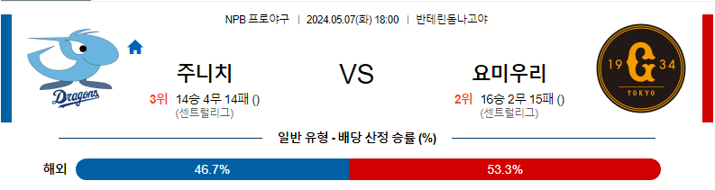 [킹콩티비] 05월 07일 주니치 vs 요미우리 NPB 생중계, 스포츠분석,스포츠중계