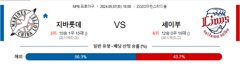 [킹콩티비] 05월 07일 지바롯데 vs 세이부 NPB 생중계, 스포츠분석,스포츠중계
