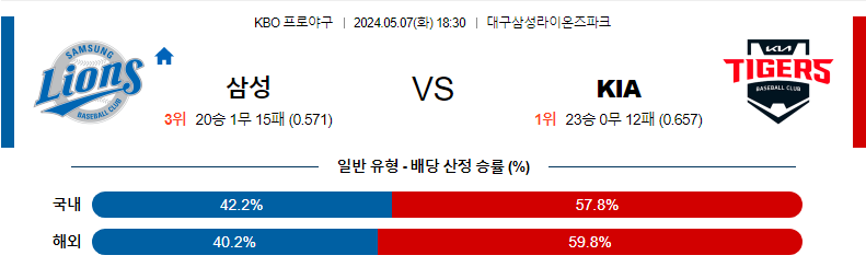 [킹콩티비] 05월 07일 삼성 vs KIA KBO 생중계, 스포츠분석,스포츠중계