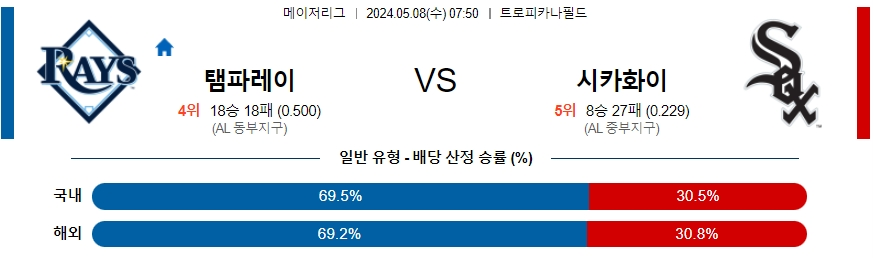 탬파베이 시카고W 야구분석
