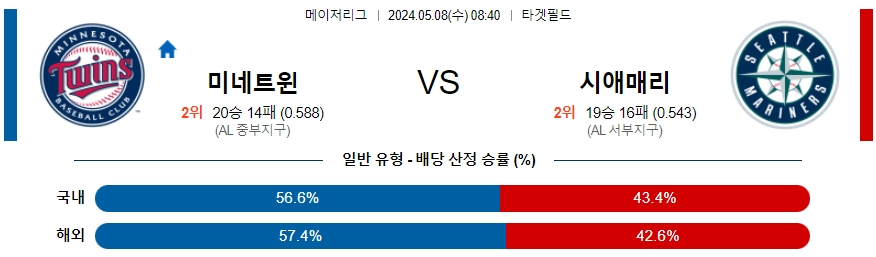 [킹콩티비] 05월 08일 미네소타 vs 시애틀 MLB 생중계, 스포츠분석,스포츠중계