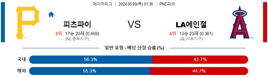 [킹콩티비] 05월 09일 피츠버그 vs LA에인절스 MLB 생중계, 스포츠분석,스포츠중계