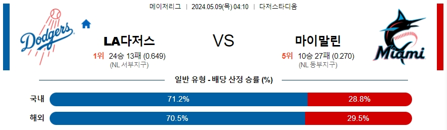 [킹콩티비] 05월 09일 LA다저스 vs 마이애미 MLB 생중계, 스포츠분석,스포츠중계