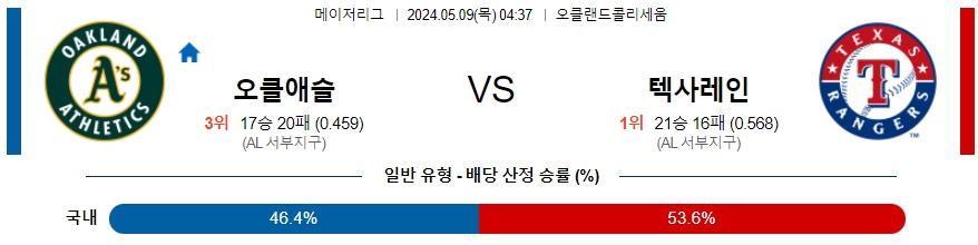 [킹콩티비] 05월 09일 오클랜드 vs 텍사스 MLB 생중계, 스포츠분석,스포츠중계