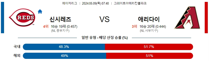 [킹콩티비] 05월 09일 신시내티 vs 애리조나 MLB 생중계, 스포츠분석,스포츠중계