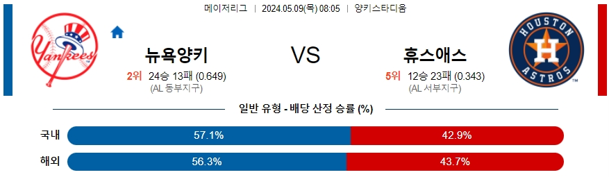 [킹콩티비] 05월 09일 뉴욕양키스 vs 휴스턴 MLB 생중계, 스포츠분석,스포츠중계