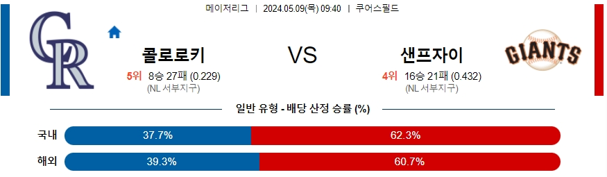 [킹콩티비] 05월 09일 콜로라도 vs 샌프란시스코 MLB 생중계, 스포츠분석,스포츠중계