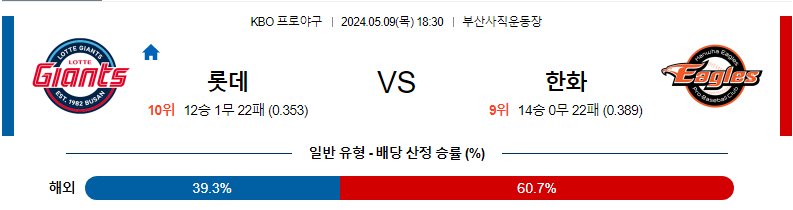 [킹콩티비] 05월 09일 롯데 vs 한화 KBO 생중계, 스포츠분석,스포츠중계