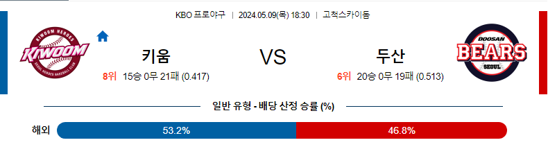 [킹콩티비] 05월 09일 키움 vs 두산 KBO 생중계, 스포츠분석,스포츠중계