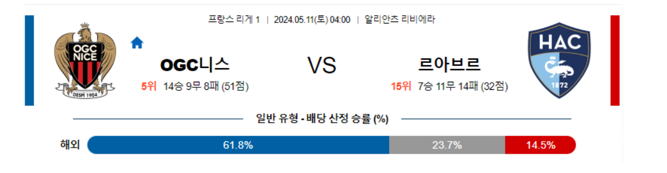 [킹콩티비] 05월 11일 니스 vs 르아브르 리그1 생중계, 스포츠분석,스포츠중계