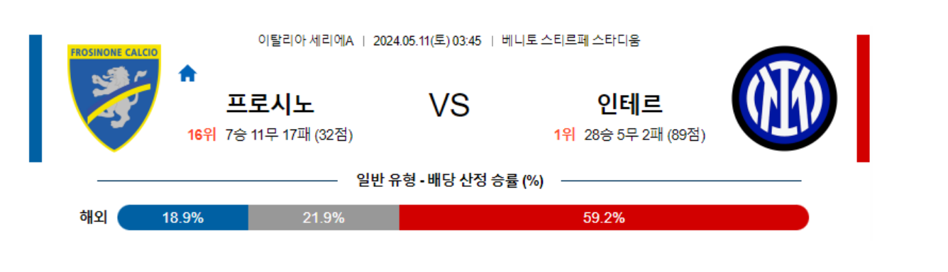 [킹콩티비] 05월 11일 프로시노네 vs 인터밀란 세리에A 생중계, 스포츠분석,스포츠중계