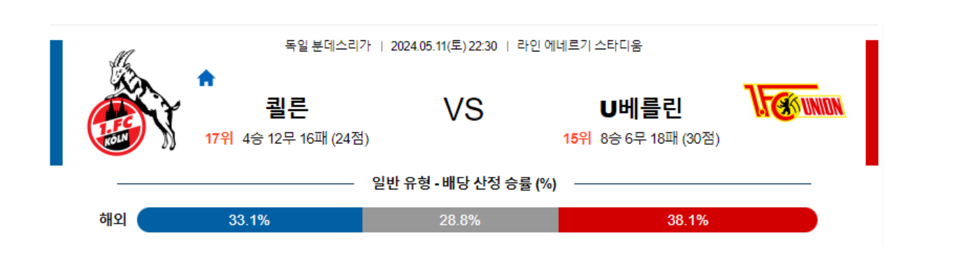 [킹콩티비] 05월 11일 쾰른 vs 우니온 분데스리가 생중계, 스포츠분석,스포츠중계