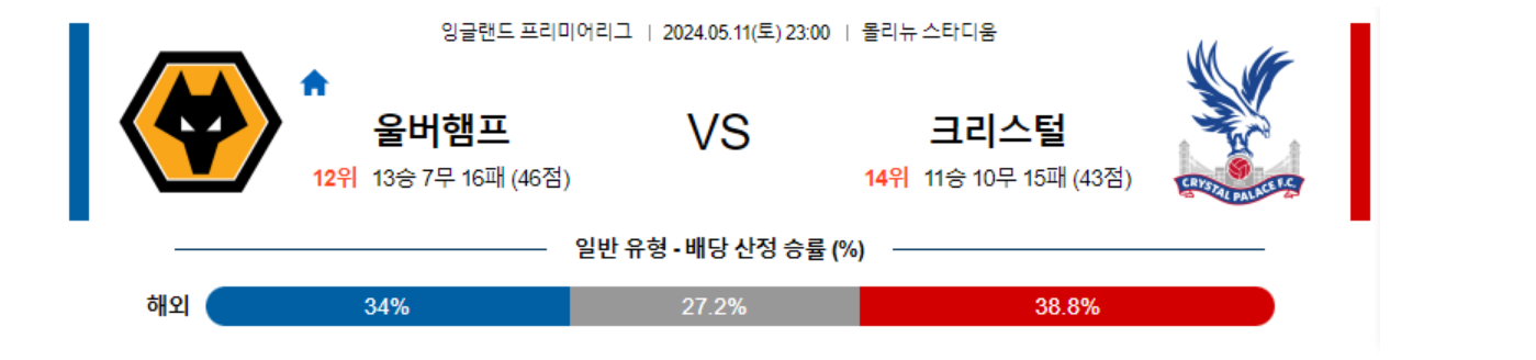 [킹콩티비] 05월 11일 울브스 vs 팰리스 EPL 생중계, 스포츠분석,스포츠중계