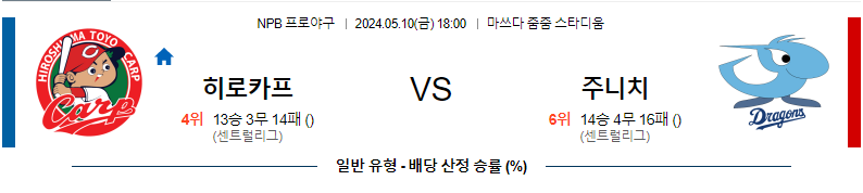 [킹콩티비] 05월 10일 히로시마 vs 주니치 NPB 생중계, 스포츠분석,스포츠중계