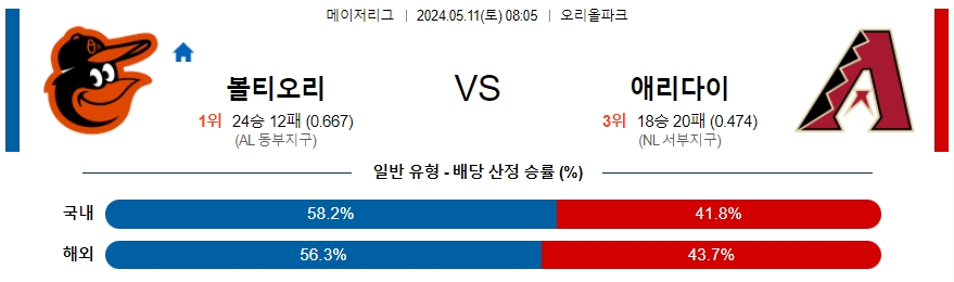 [킹콩티비] 05월 11일 볼티모어 vs 애리조나 MLB 생중계, 스포츠분석,스포츠중계