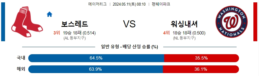 [킹콩티비] 05월 11일 보스턴 vs 워싱턴 MLB 생중계, 스포츠분석,스포츠중계