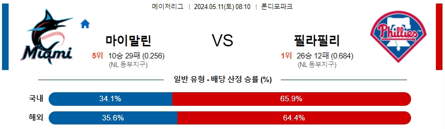 [킹콩티비] 05월 11일 마이애미 vs 필라델피아 MLB 생중계, 스포츠분석,스포츠중계
