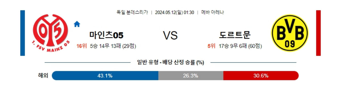 [킹콩티비] 05월 12일 마인츠 vs 도르트문트 분데스리가 생중계, 스포츠분석,스포츠중계