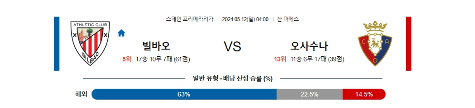 [킹콩티비] 05월 12일 빌바오 vs 오사수나 라리가 생중계, 스포츠분석,스포츠중계