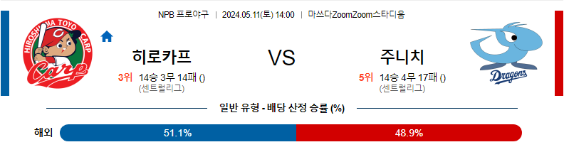 [킹콩티비] 05월 11일 히로시마 vs 주니치 NPB 생중계, 스포츠분석,스포츠중계
