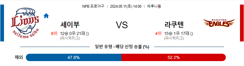 [킹콩티비] 05월 11일 세이부 vs 라쿠텐 NPB 생중계, 스포츠분석,스포츠중계