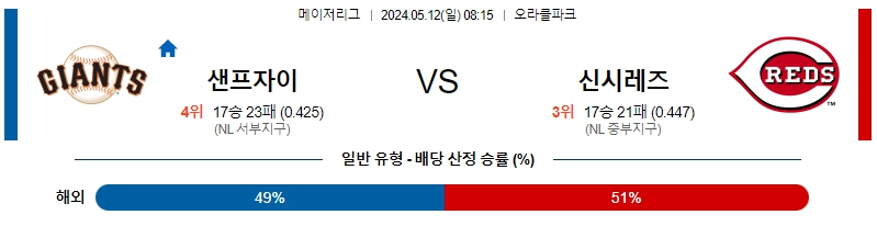 [킹콩티비] 05월 12일 샌프란시스코 vs 신시내티 MLB 생중계, 스포츠분석,스포츠중계