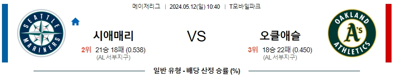 [킹콩티비] 05월 12일 시애틀 vs 오클랜드 MLB 생중계, 스포츠분석,스포츠중계