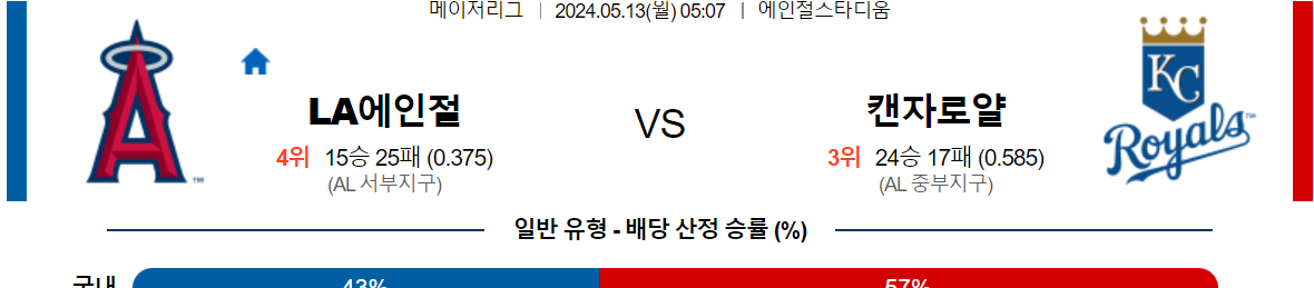 [킹콩티비] 05월 13일 LA에인절스 vs 캔자스시티 MLB 생중계, 스포츠분석,스포츠중계