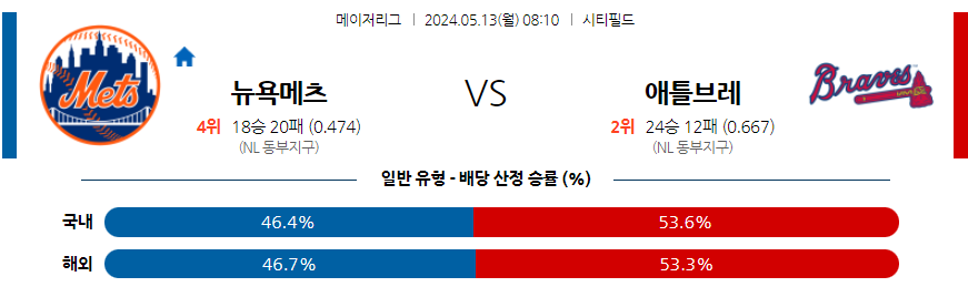 [킹콩티비] 05월 13일 뉴욕메츠 vs 애틀랜타 MLB 생중계, 스포츠분석,스포츠중계