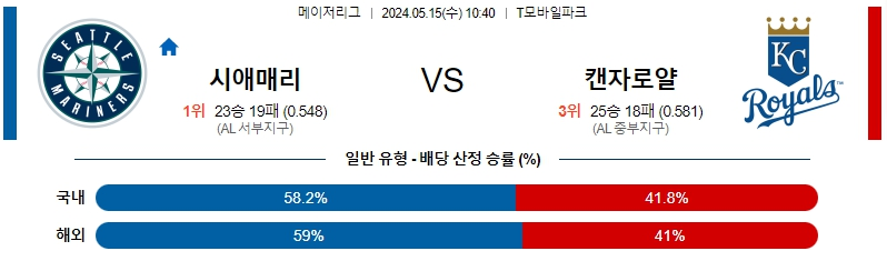 [킹콩티비] 05월 15일 시애틀 vs 캔자스시티 MLB 생중계, 스포츠분석,스포츠중계