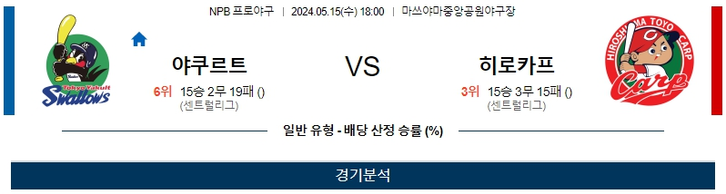 [킹콩티비] 05월 15일 야쿠르트 vs 히로시마 NPB 생중계, 스포츠분석,스포츠중계