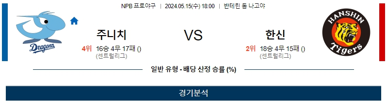 [킹콩티비] 05월 15일 주니치 vs 한신 NPB 생중계, 스포츠분석,스포츠중계
