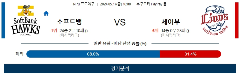 [킹콩티비] 05월 17일 소프트뱅크 vs 세이부 NPB 생중계, 스포츠분석,스포츠중계
