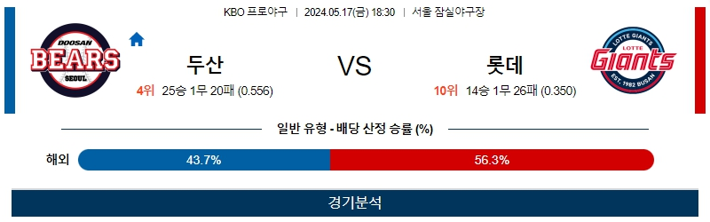 [킹콩티비] 05월 17일 두산 vs 롯데 KBO 생중계, 스포츠분석,스포츠중계