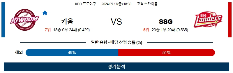 [킹콩티비] 05월 17일 키움 vs SSG KBO 생중계, 스포츠분석,스포츠중계