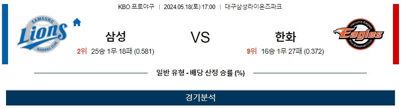[킹콩티비] 05월 18일 삼성 vs 한화 KBO 생중계, 스포츠분석,스포츠중계