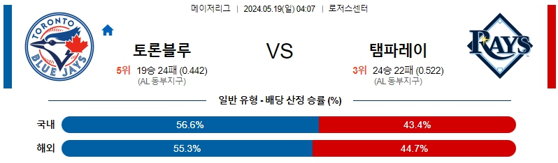 [킹콩티비] 05월 19일 토론토 vs 탬파베이 MLB 생중계, 스포츠분석,스포츠중계