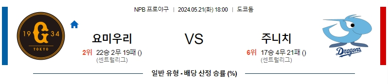 [킹콩티비] 05월 21일 요미우리 vs 주니치 NPB 생중계, 스포츠분석,스포츠중계