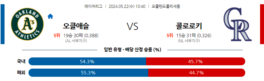 [킹콩티비] 05월 22일 오클랜드 vs 콜로라도 MLB 생중계, 스포츠분석,스포츠중계