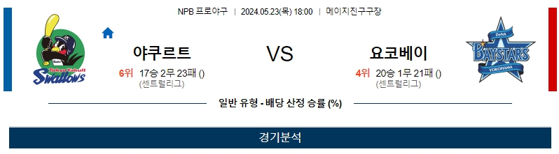 [킹콩티비] 05월 23일 야쿠르트 vs 요코하마 NPB 생중계, 스포츠분석,스포츠중계
