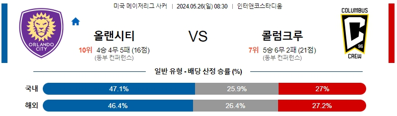 [킹콩티비] 05월 26일 올랜도 vs 콜럼버스 MLS 생중계, 스포츠분석,스포츠중계