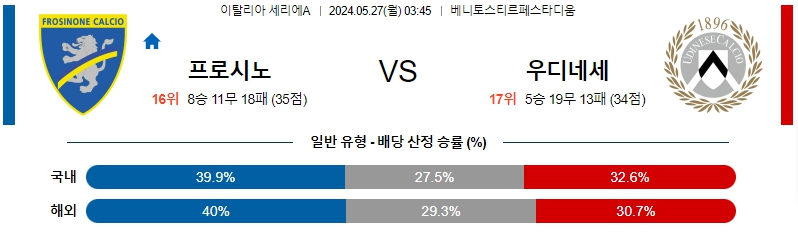 [킹콩티비] 05월 27일 프로시노네 vs 우디네세 세리에A 생중계, 스포츠분석,스포츠중계