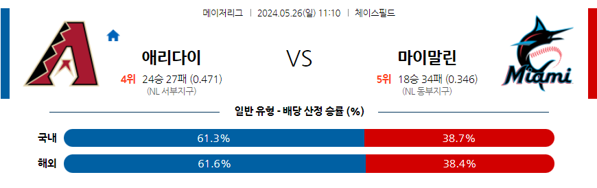 [킹콩티비] 05월 26일 애리조나 vs 마이애미 MLB 생중계, 스포츠분석,스포츠중계