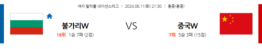 [킹콩티비] 06월 11일 불가리아(W) vs 중국(W) 네이션스리그 생중계, 스포츠분석,스포츠중계