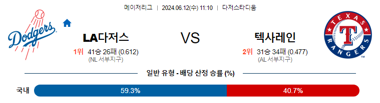 [킹콩티비] 06월 12일 LA다저스 vs 텍사스 MLB 생중계, 스포츠분석,스포츠중계