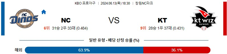 [킹콩티비] 06월 13일 NC vs KT KBO 생중계, 스포츠분석,스포츠중계